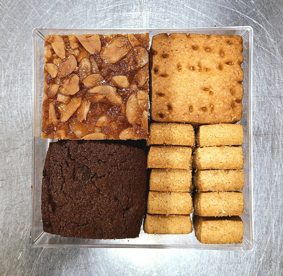 内容は〈アーモンドクッキー10枚〉〈チョコチップクッキー2枚〉今回限定の新作クッキー〈フロランタン2枚〉〈ハードクッキー3枚〉を加えた4種類になります。